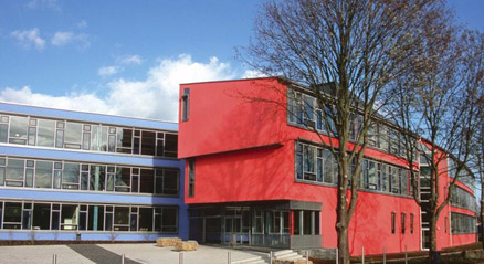 Schulbau mit Klassen- und Fachklassenräumen, Lehrerzimmer, Bibliothek, Computerraum sowie Schülerarbeits- und -aufenthaltsräumen.