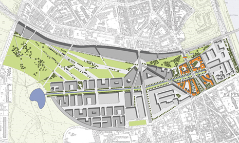 Mit der Umnutzung des Dombräugeländes zu einem Wohn- und Arbeitsquartier wird die einmalige Chance genutzt, den Kölner Grüngürtel weiter zu führen und eine großzügige Wegeverbindung durch diese hindurch bis hin zum Rhein zu schaffen.