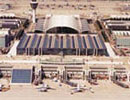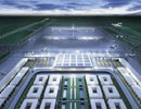 Ein moderner Flughafen mit 112 Gates und einer Gesamtgröße von ca. 260.000 m² mit einer zentralen Halle, Wartungsfläche, Loungebereich, Gepäckausgabe, Läden und Restaurants.