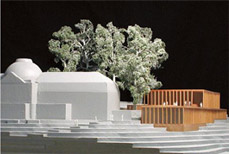 Eine Ausstellungsebene mit darüber liegendem Foyer und Technikgeschoss darunter und ein erdüberschüttetes Magazingebäude mit oberseitiger Parkfläche.